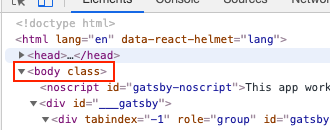 Therefore by updating the gatsby-ssr.js to the following we can intercept this to add a new body class: